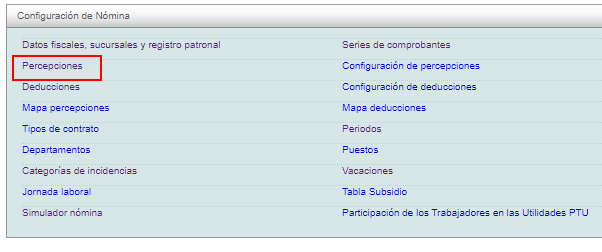 Enseguida de clic en la opción "Percepciones".