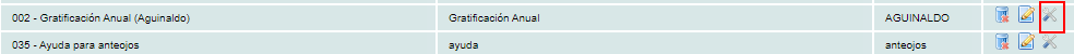 Una vez agregada, la visualizaremos en la lista de Percepciones, de clic en el icono de Configuración (herramientas cruzadas).