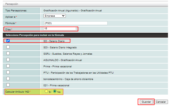 Nota: se debe calcular mínimo 15 días antes, con la percepción de Salario diario (SD), sin embargo pueden elegirse las opciones deseadas.