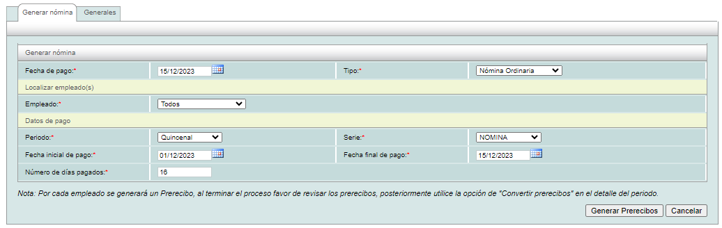 Luego, de clic en "Generar prerecibos".