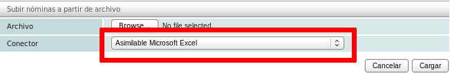 Seleccione el tipo de conector "Asimilable Microsoft Excel".