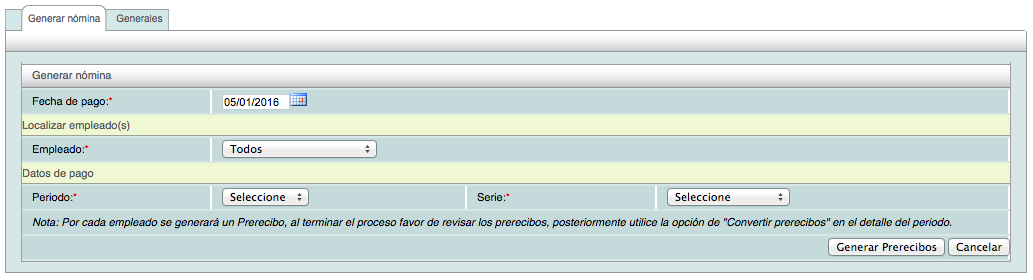 Para continuar con el proceso dé click en el botón "Generar Prerecibos."