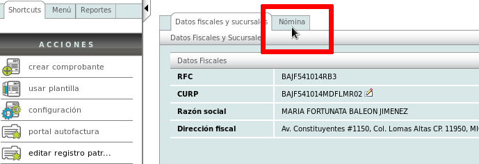 Dé click en la opción de "Datos fiscales, sucursales y registro patronal".