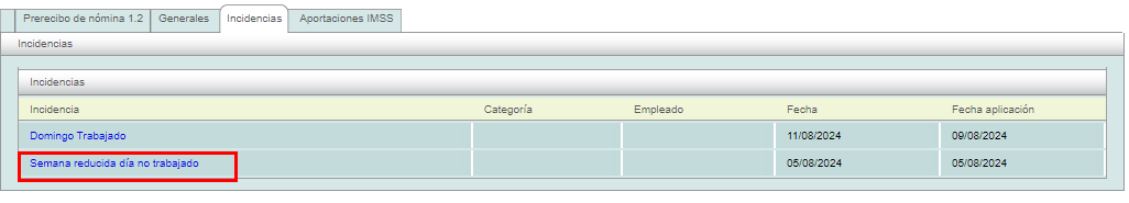 Se crea la incidencia de manera automática “Semana reducida día no laborado” asociada al recibo.
