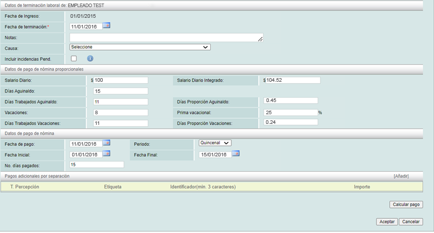 Si decide terminar la relación laboral entre su empresa y alguno de los empleados será necesario generar un recibo de nómina que contenga el "Finiquito" a pagar, esta acción deberá realizarse por empleado y se realizará solo una vez.