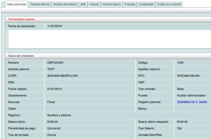Cuando termine, de click en el botón "Guardar" ubicado en la parte baja de la pantalla, de este modo el empleado quedará activo en el sistema.