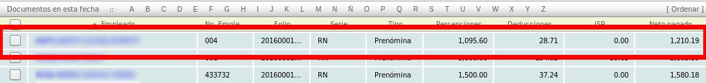 De los prerecibos que se muestran, de click sobre el algún empleado para ver el subsidio causado.