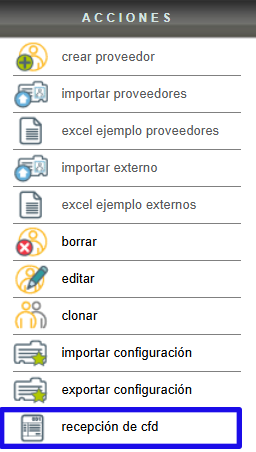 Next, go to the"Acciones" menu and click on the "Recepción de CFD" option.