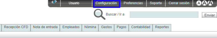 If you want to apply the configuration to all suppliers, within the Solución Factible portal we go to the panel “Configuración" which is located at the top of the platform.
