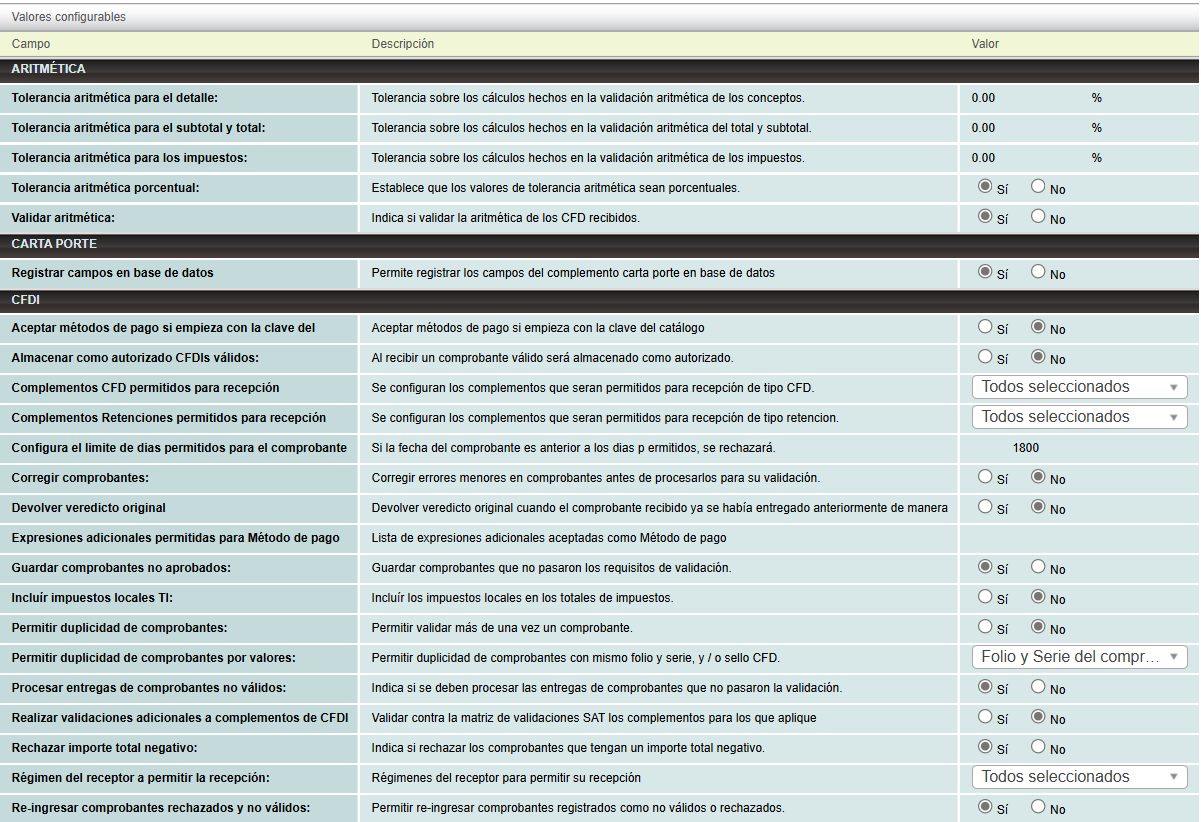 The steps for configuring the validations or business rules applicable to the CFDI validation process are described below.