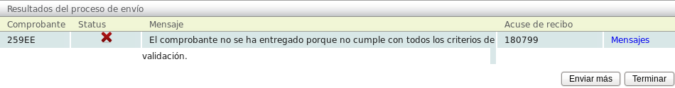 Si alguno presentó un error el sistema le avisará. Para mostrar el detalle de los errores, de click en "Mensajes".