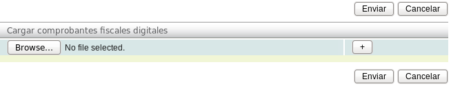 Para cargar un comprobante es necesario el archivo .xml de dicho CFD. De click en el primer botón "Browse..." para seleccionar el archivo .xml.