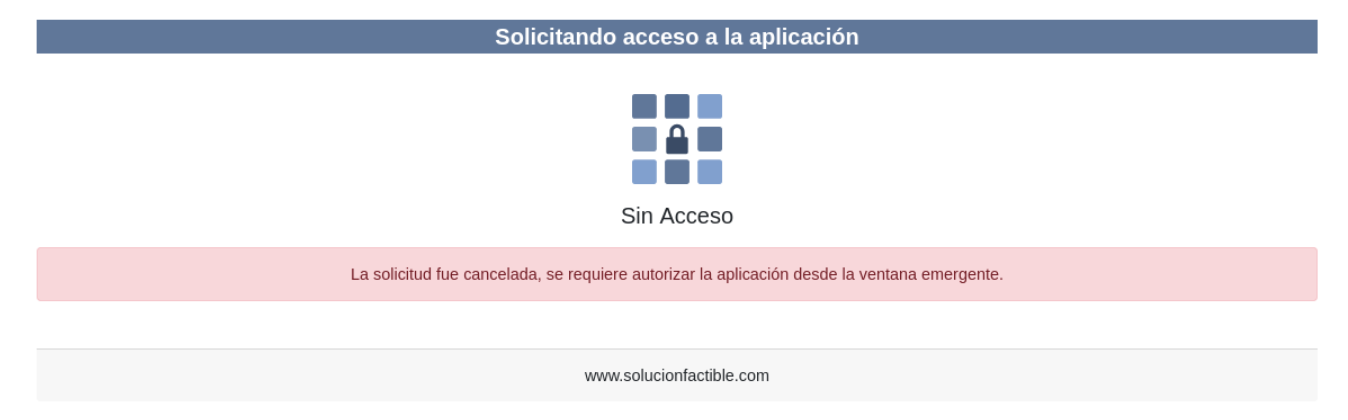 The following errors may appear if the application authorization process is not completed during cancellation or when closing the pop-up window, so you need to reload the screen to try again.