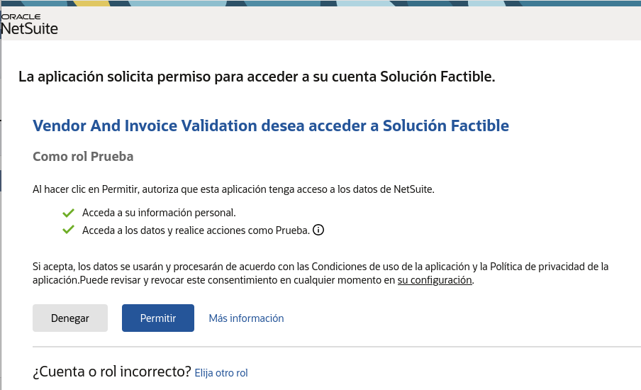 The following error may appear when authorizing the application; it will be necessary (to contact your NetSuite administrator).
