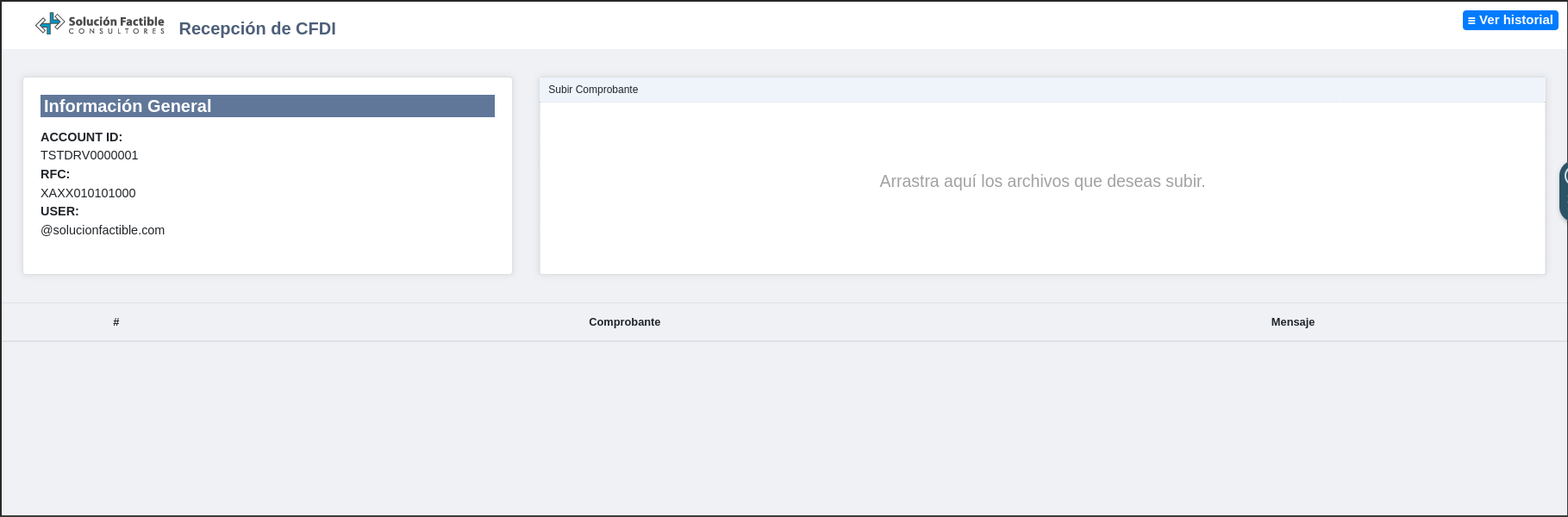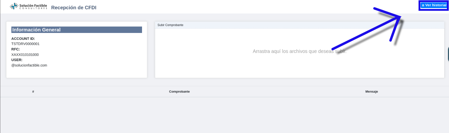 From the main screen, you can view the list of e-documents by clicking on the upper right corner called "Ver historial".
