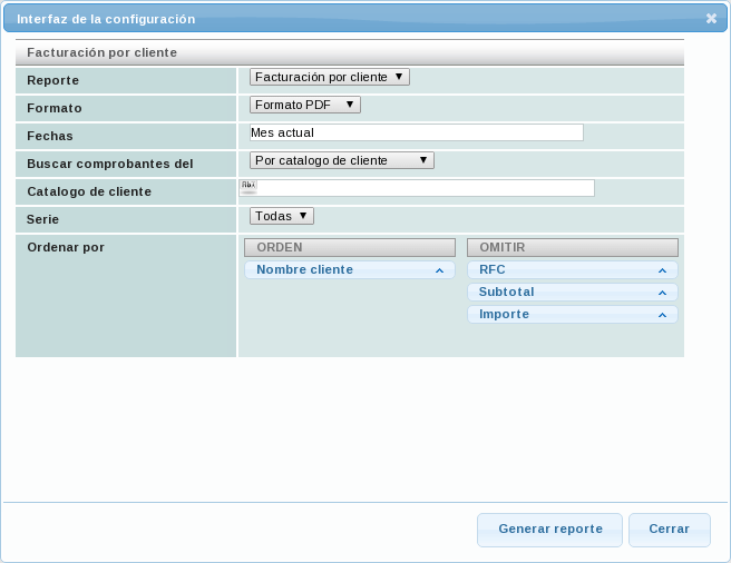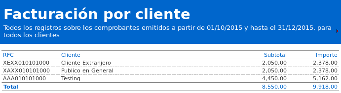 A continuación se desplegará la lista completa de reportes disponibles, dé click en la opción "Facturación por cliente".