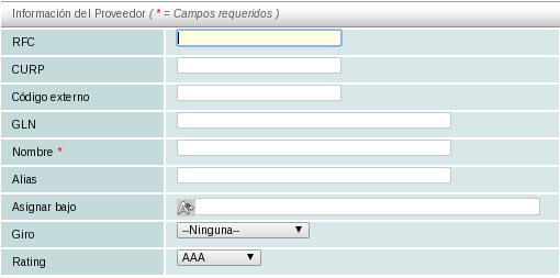 Los campos marcados con "*" asterisco son de caracter obligatorio, en este caso ingrese solo el RFC y razón social, el resto de los datos solicitados en este bloque son de carácter informativo y solo le ayudan a mantener una mayor información de su proveedor.