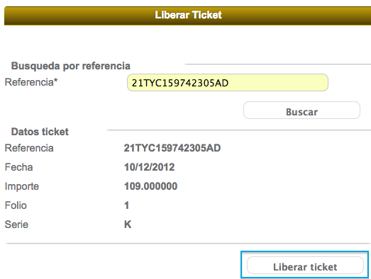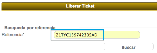 Para realizar la liberación debe agregar la referencia (No. ticket) y dé click en el botón "Buscar".