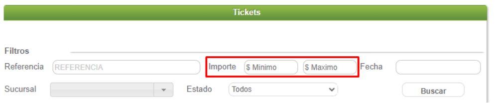 En esta sección usted podrá consultar el "estado" de un ticket, utilice los filtros y de click en el botón "Buscar".
