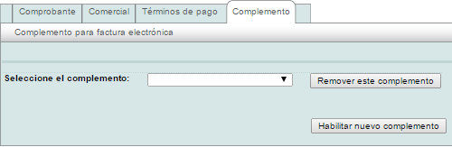 Ya capturada la información de su comprobante en la pestaña "Facturación", vaya a la parte superior de su formulario y seleccione la pestaña "Complemento".