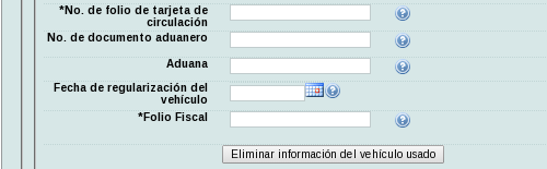 No. de folio de tarjeta de circulación: ingrese el número de folio de la tarjeta de circulación del vehículo usado que se enajena.