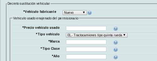 Tipo Vehiculo: seleccione según el Decreto, las características del vehículo usado que el permisionario enajena al fabricante, ensamblador o distribuidor autorizado a cuenta del precio del vehículo nuevo o seminuevo, de acuerdo con el catálogo “4. Tipo de vehículo conforme al Decreto por el que se otorgan medidas para la sustitución de vehículos de autotransporte de pasaje y carga”.