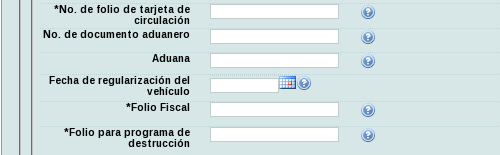 Fecha de regularización del vehículo: ingrese la fecha del pedimento en el que se regularizó la legal importación definitiva del vehículo usado, en su caso. Se expresa en la forma aaaa-mm-dd de acuerdo a especificación ISO 8601.