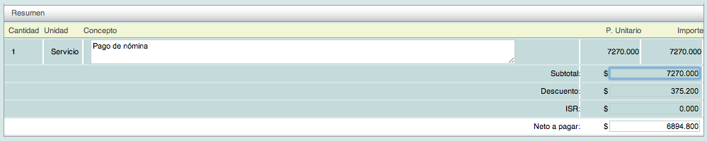 Para terminar la generación del recibo de nómina podrá visualizar el resumen del comprobante, verifique que los totales sean correctos.
