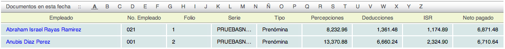 Para realizar la descarga del formato PDF de su recibo deberá ingresar al mismo dando click en el nombre de su empleado.