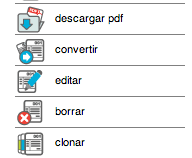 Una vez generados podrá observar cada uno de ellos directamente en el panel principal y realizar las diferentes opciones que le permite el menú "Acciones".