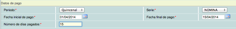 Al seleccionar el periodo tendrá que definir la fecha inicial y final de pago así como los días a pagar.