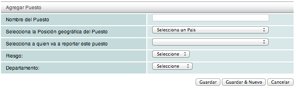 Deberá ingresar cada uno de los puestos existentes en su empresa de mayor a menor; es decir, registre primeramente el puesto de mayor jerarquía.