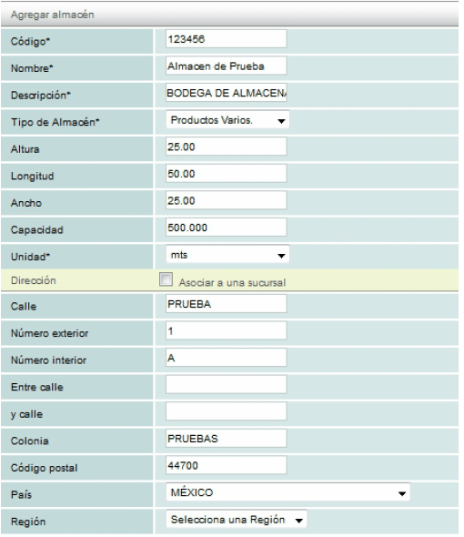 En seguida deberá ingresar la información solicitada para el registro del almacén, los campos con "*" (asterisco) son obligatorios.