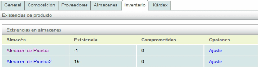 Al ingresar al producto usted podrá observar la pestaña "Inventario", donde podrá realizar ajustes y movimientos.