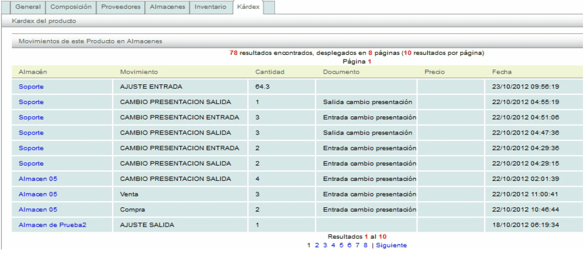 El kárdex del producto es un resumen de todos los movimientos realizados en el producto, seleccionando esta pestaña usted podrá obtener información relevante de su producto.