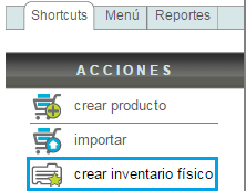 Le presentará en menú "Acciones" la opción "Crear inventario físico" seleccionela.