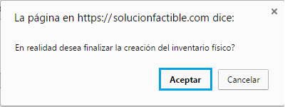 Finalizar: le mostrará el resumen del inventario físico, para finalizar presione el botón de finalizar.