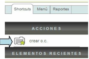 Para la creación de la orden de compra tan sólo diríjase al módulo "Compras" y en el menú "Acciones" dé click sobre el botón "crear o. c."