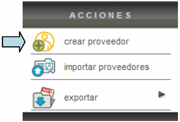 Este módulo le permite cargar en el sistema sus proveedores, para realizar esto, ingrese al módulo "Proveedores" y dé click en la opción "crear proveedor" ubicada en el menú "Acciones".