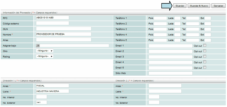 El registro del proveedor es muy similar al registro de un cliente, en el que se le solicitan datos propios de cada proveedor, registre la información que se le solicita.