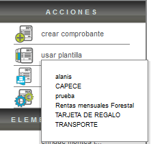Una vez creada la plantilla, se habilitará una nueva opción dentro del menú "Acciones" llamada "Usar plantilla" dé click en dicha opción para visualizar la o las plantillas almacenadas en el sistema, de este modo puede seleccionar la plantilla que desea realizar en factura.