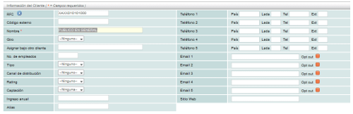 Datos obligatorios: RFC y Nombre del cliente (nombre fiscal o razón social), el resto de los datos solicitados en este bloque son de carácter informativo y sólo le ayudan a mantener una mayor información de su cliente, sin embargo no van impresos en su factura electrónica.
