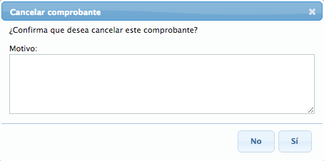 Tan sólo dé click en el botón "Si" cuando el sistema le indique confirmar esta acción, el dato "Motivo" es opcional y le permitirá registrar el motivo de cancelación.