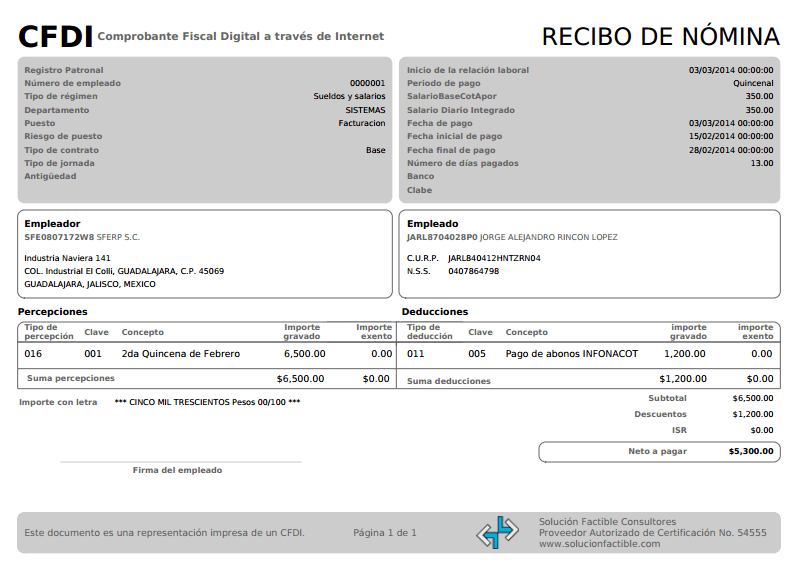 Para terminar la generación del recibo de nómina podrá visualizar el resumen del comprobante, verifique que los totales sean correctos.
