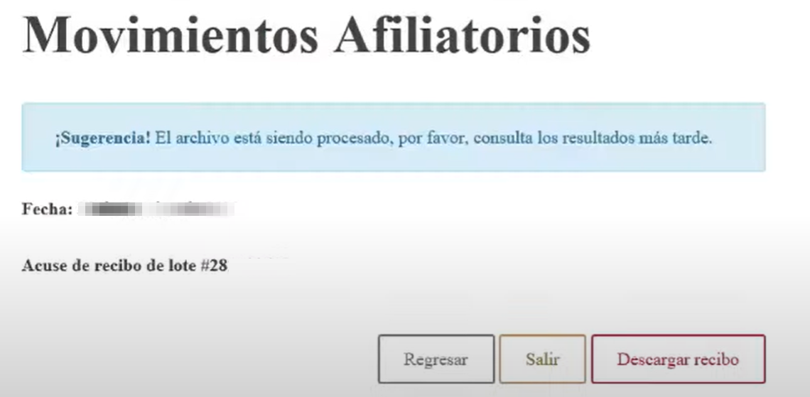 Para finalizar consultamos los resultados en la sección "Resultados de últimos Movimientos Afiliatorios".
