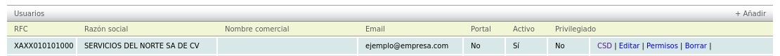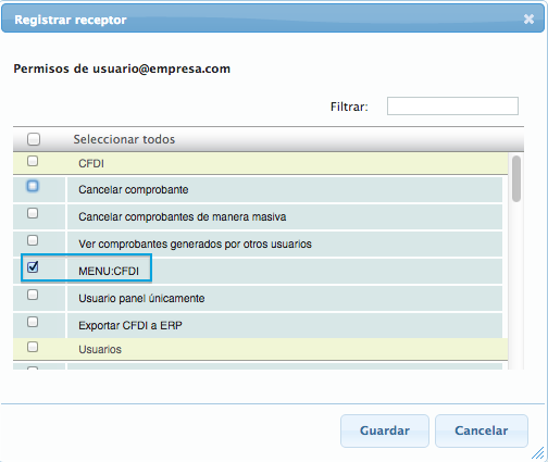 - Emisor: seleccione el RFC del emisor al que desea asignar el usuario.