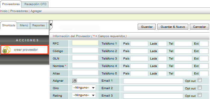 El registro del proveedor es muy similar al registro de un cliente, en el que se le solicitan datos propios de cada proveedor, cabe mencionar que al momento que usted carga y valida un comprobante de un proveedor no registrado, este se guarda de forma automática en el sistema.