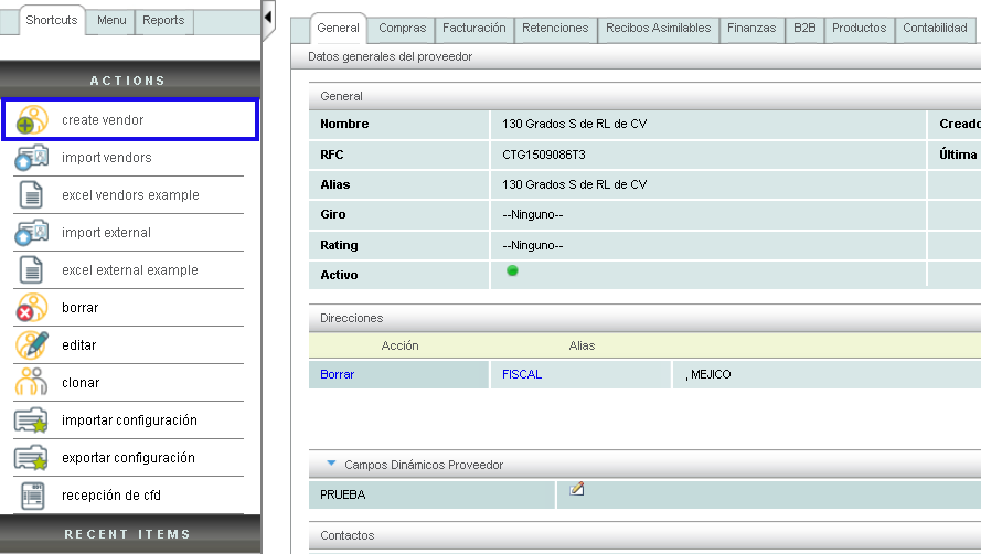 Once your vendor is registered, you can perform several activities within the menu Actions such as editing, deleting, or cloning said vendor. You can also find some actions to perform within the main panel. Below, we'll explain how to use each of them.