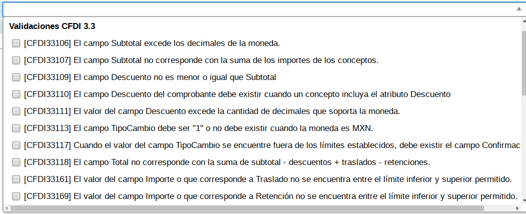 This option allows you to exclude some validations from the SAT error matrix, it is necessary to be sure to activate them, since the system will allow receipts that do not meet the validations to be registered in the system.
