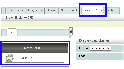 Para realizar la validación del comprobante, ingrese a la pestaña Envío de CFD y de click en el botón Enviar CFD ubicado en el menú Acciones.